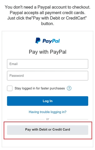 - Just select “Paypal” and click the “Pay with Debit or Creditcard” button.